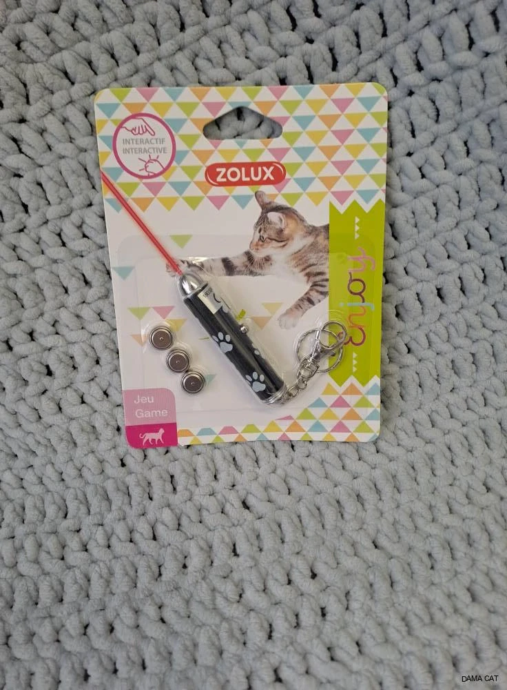 Interaktivní hračka pro kočky se světelným paprskem v kompaktní tyčince, kterou je možné mít stále u sebe. Tyčinka má řetízek s kroužkem a karabinkou pro připnutí např. ke klíčům.