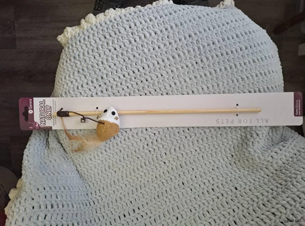 Dřevěná udice pro kočky přírodních materiálů.