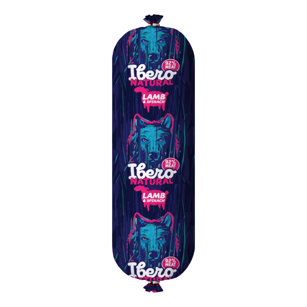 Ibero Natural Sausage salám pro psy jehněčí se špenátem 800 g