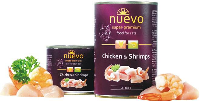 Nuevo Cat Adult konzerva pro kočky s kuřetem a krevetami 400 gSkladem 7 ks50 Kč/ ks